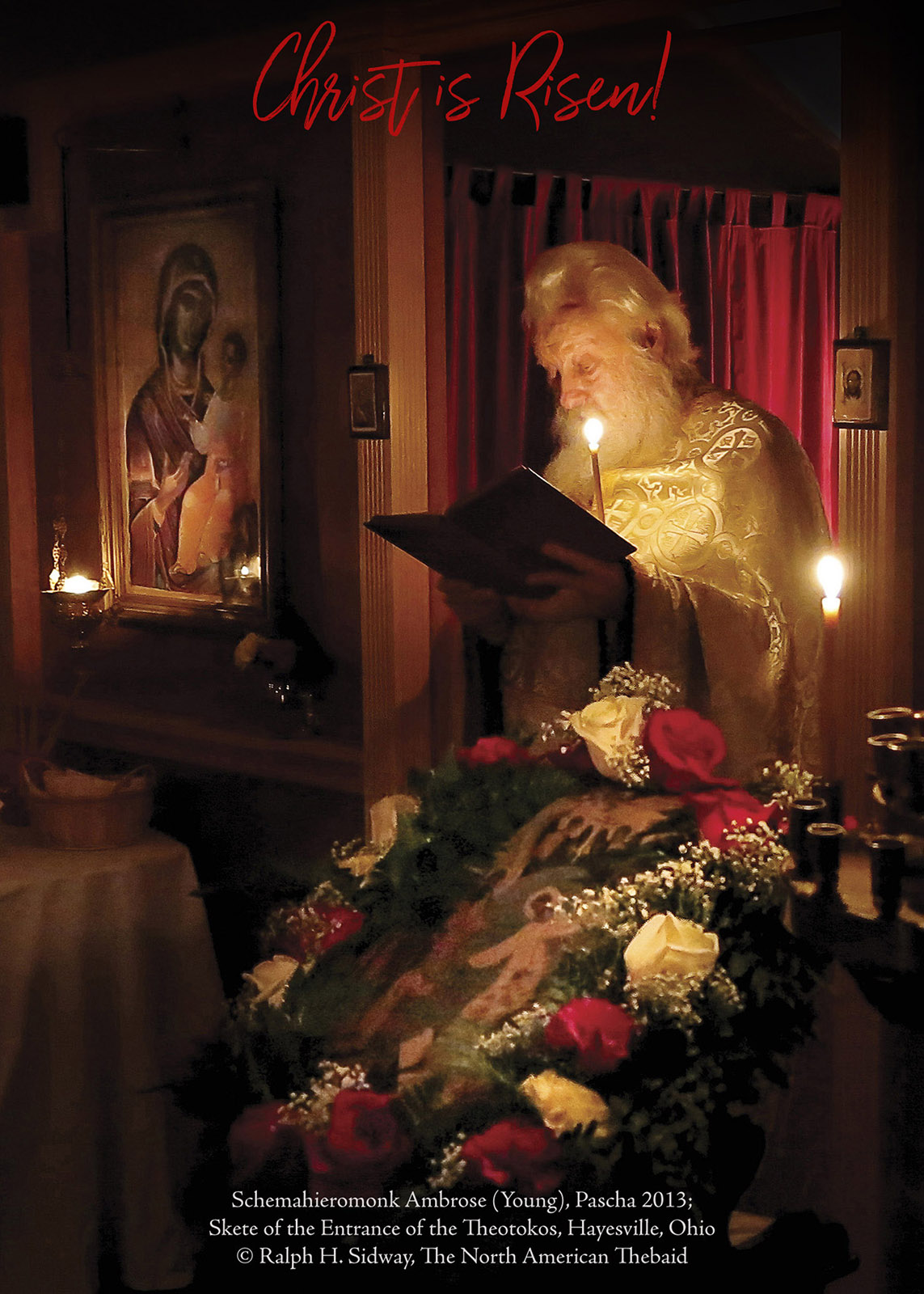 For those of you familiar with The North American Thebaid book, you will recognize this photograph of Fr. Ambrose (Young) which accompanies his wonderful essay, “What is a Holy Pilgrimage?” The text is a selection from the remarkable Paschal Homily of St John Chrysostom, read to the faithful every year at the conclusion of the Paschal Matins.